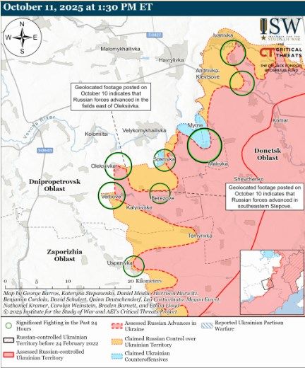 У східній частині Запорізької області (район Гуляйполя) російські сили ведуть бої без підтверджених змін, стикаючись з опором Сил оборони України.