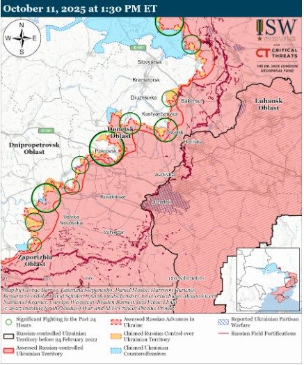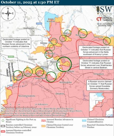 За даними ISW, найінтенсивніші бої – біля Предтечиного, Торця, Русиного Яру, Полтавки та Володимирівки.