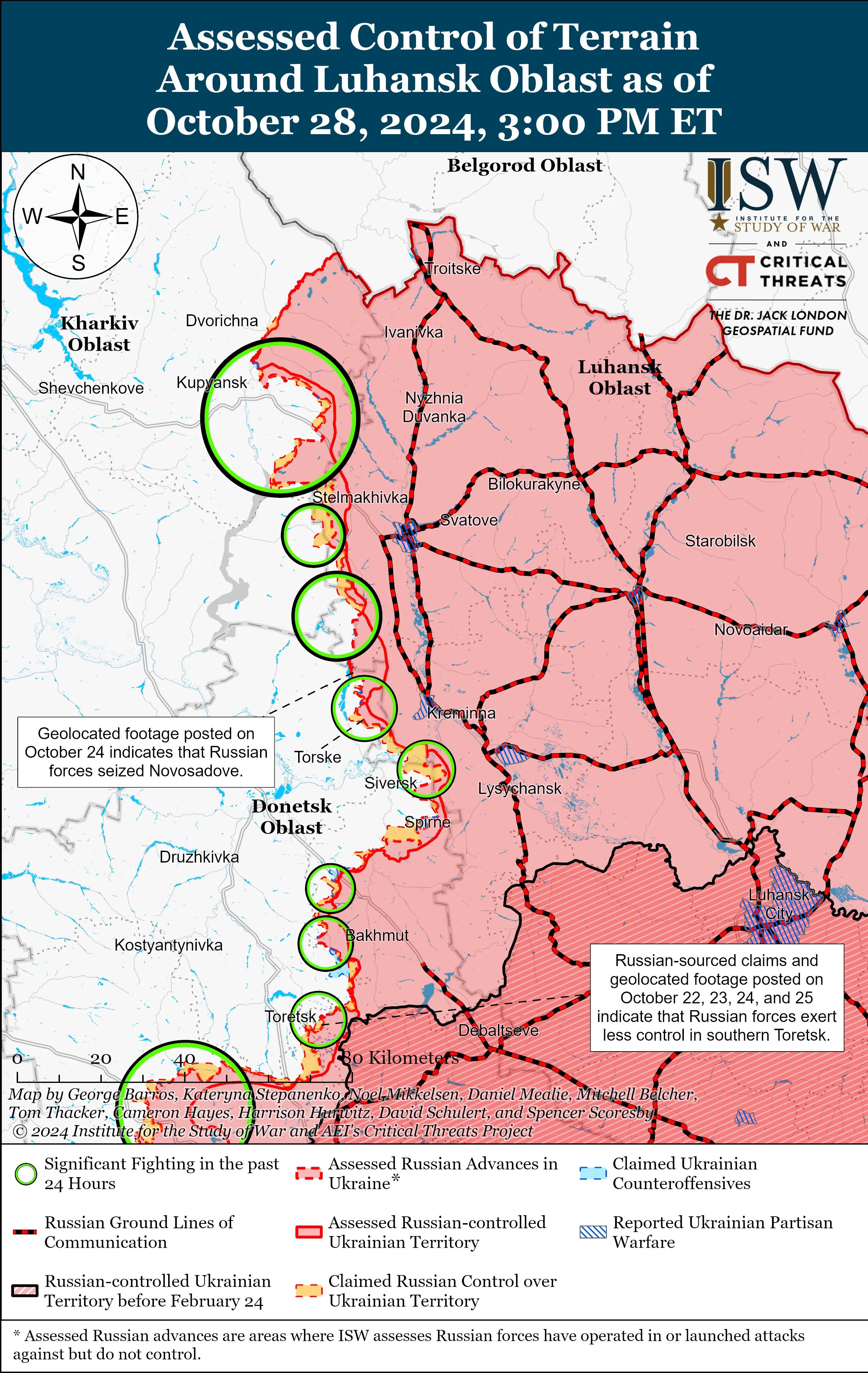Аналітики зазначають, що 28 жовтня ані росіяни, ані українці, не повідомляли про бойові дії на Сіверському напрямку.