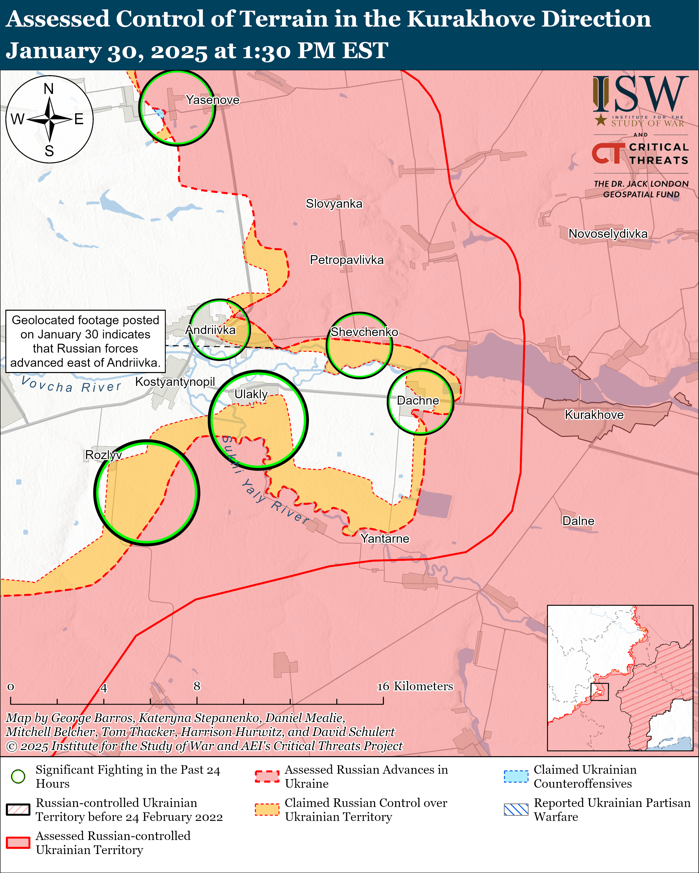Російські війська просунулися на Курахівському напрямку. Зокрема, в полі до східної околиці Андріївки. Росіяни стверджували, що російські війська також просунулися далі в південне Дачне, у бік Улакли від Зеленівки і на південний захід від Костянтинополя, однак підтверджень немає.