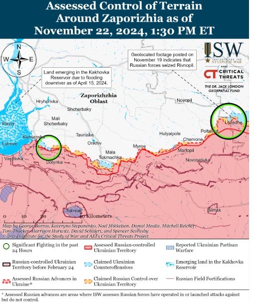 21 і 22 листопада російські війська продовжували наступ на заході Запорізької області. Зокрема, мовиться про північний захід від Роботиного поблизу П’ятихаток. Просувань ворога зафіксовано не було.
