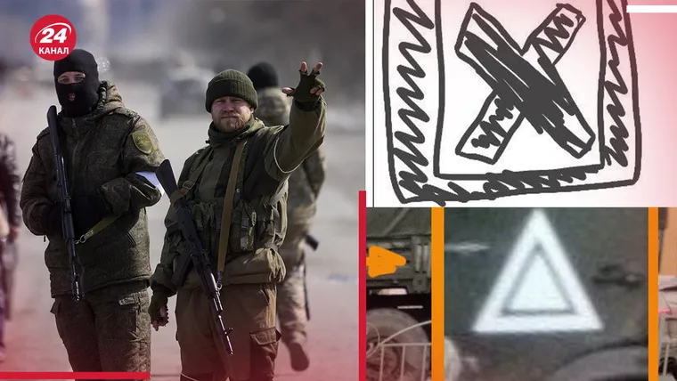 Якщо раніше були підрозділи з позначками "Z" і "V", то тепер з'явились X у квадраті, що рухаються в напрямку Бердянська, а також трикутник у трикутнику, що з'їжджаються з Херсонського напрямку.