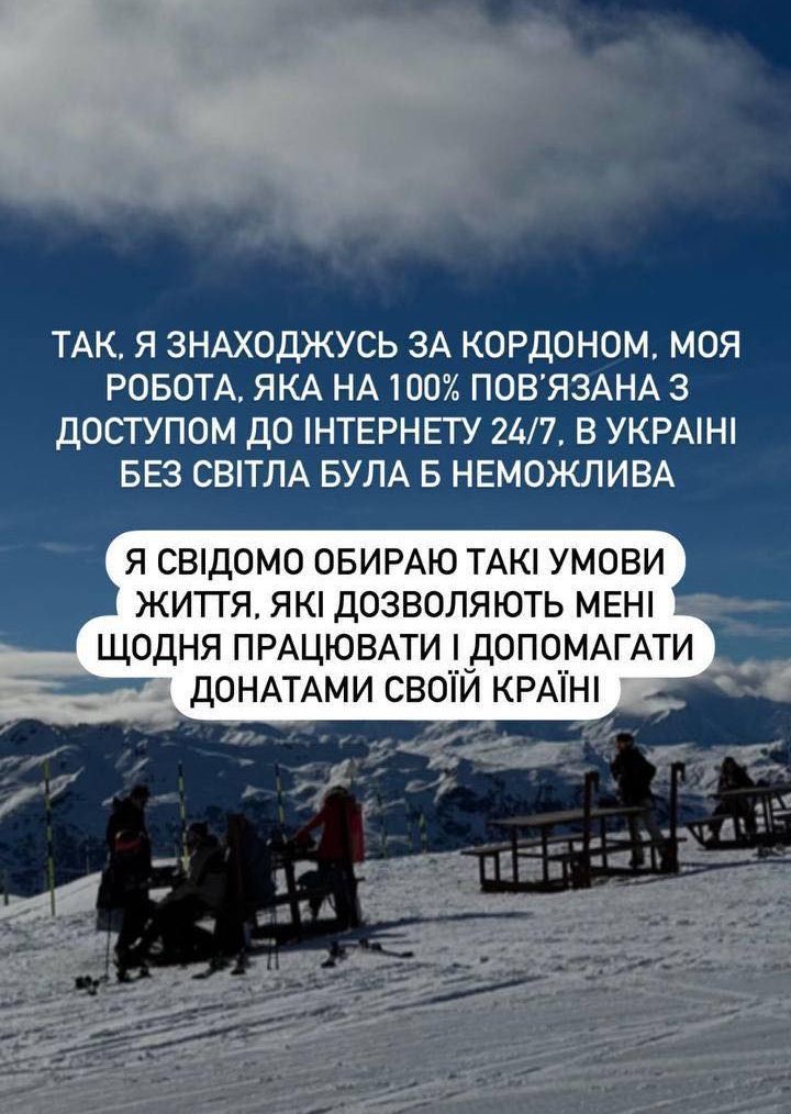 Так, я перебуваю за кордоном. Моя робота, яка на 100% пов'язана з доступом до інтернету 24/7, в Україні без світла була б неможлива. Я свідомо обираю такі умови життя, які дозволяють мені щодня працювати та допомагати донатами своїй країні,