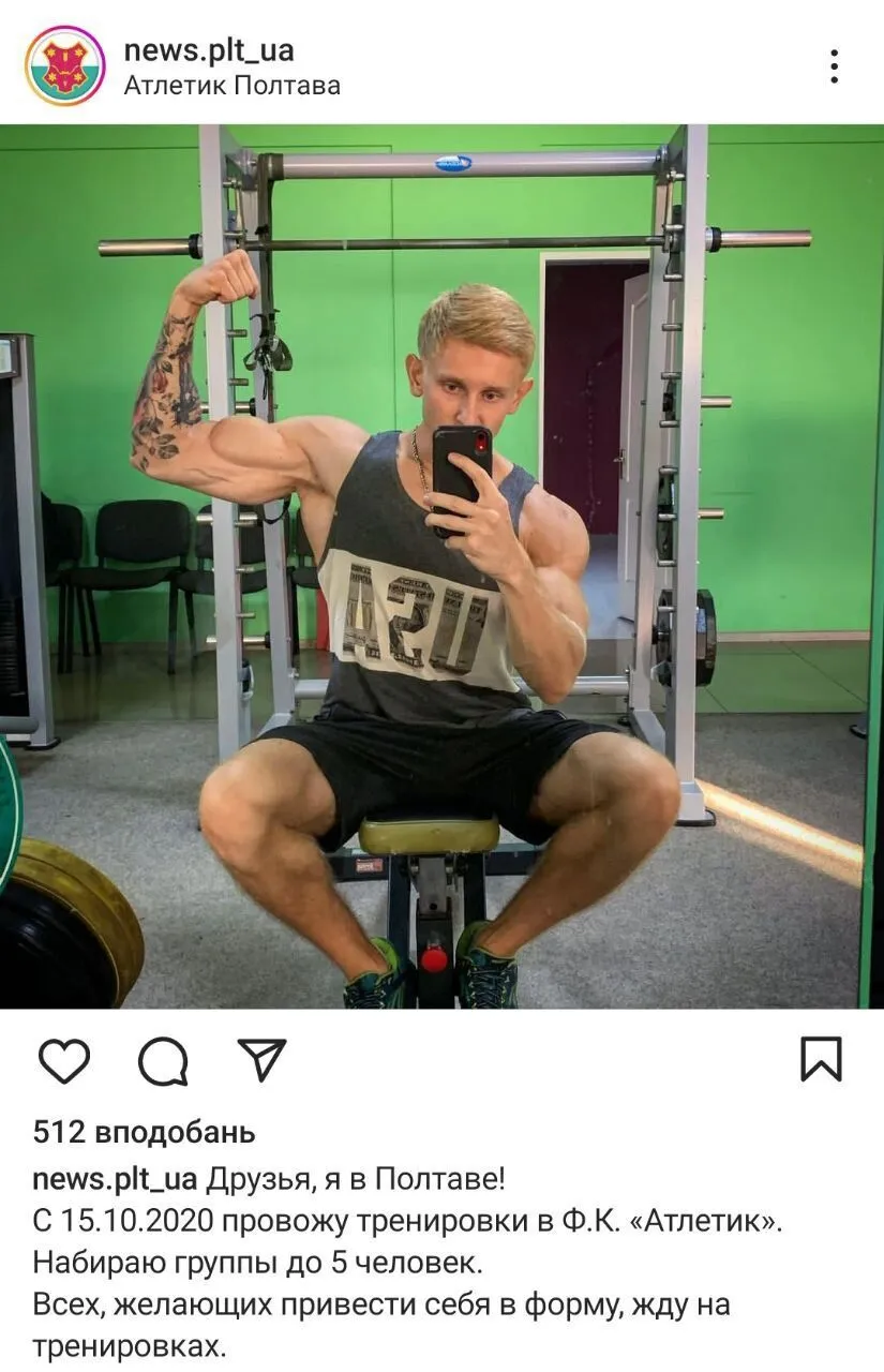 Ухилянт працює фітнес-тренером / Фото з особистого архіву