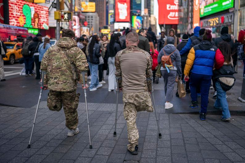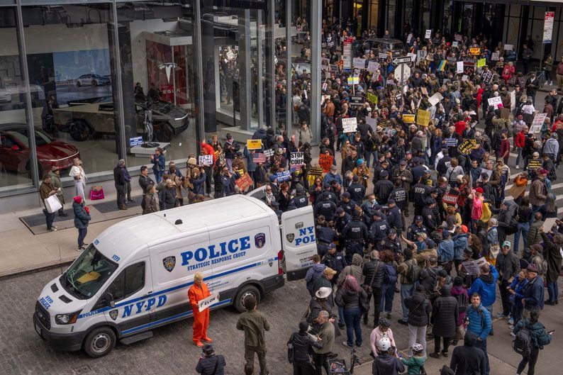 На головній площі Нью-Йорка сотні людей вийшли на підтримку України. Таймс-Сквер переповнювали синьо-жовті стяги та плакати з написами: "Україна/Свобода", "Stand with Ukraine", "Захистіть своїх дітей від диктатора", "Зупиніть Путіна" тощо. Також активісти принесли зображення, які гостро критикують чи висміюють Трампа та його адміністрацію.