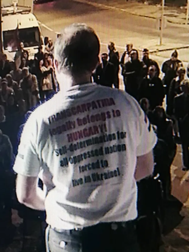 При цьому вона зазначила, що на одному з учасників акції була футболка з написом "Закарпаття по закону належить Угорщині. Самовизначення для всіх пригнічених націй, примушених жити в Україні".