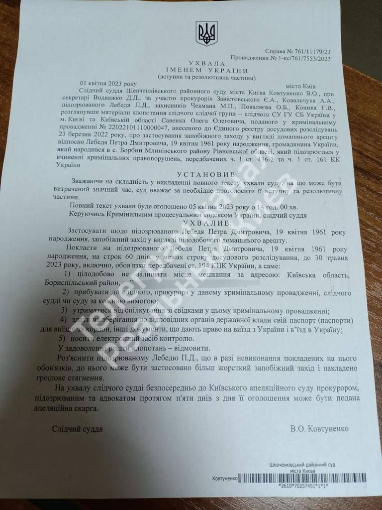 Пізно ввечері 1 квітня суд задовольнив клопотання прокуратури та призначив Паші "Мерседесу" запобіжний захід – цілодобовий домашній арешт на 60 днів із зобов'язанням носити електронний браслет.