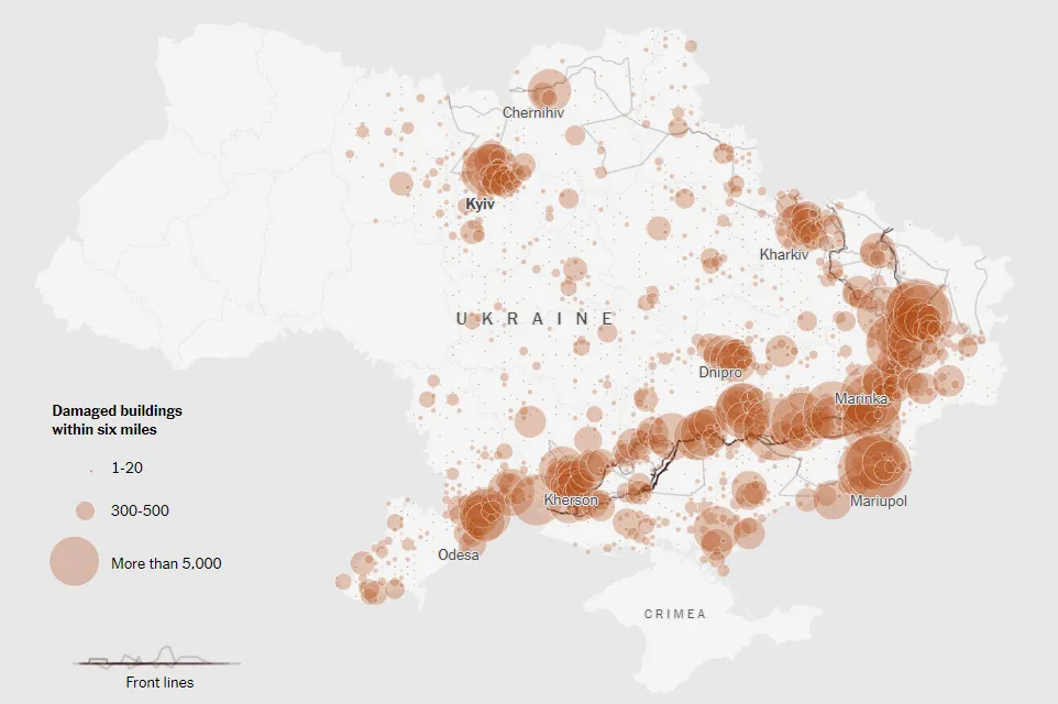 Масштаби руйнувань в Україні за 2 роки повномасштабної війни / Скриншот з New York Times