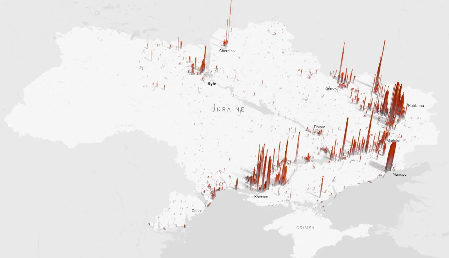До цієї статистики не входять дані про руйнування в Криму, а також в частині західних областей України. Втім, журналісти наголошують, що масштаб руйнування може бути значно більшим, адже щодня російські військові обстрілюють прифронтові території.