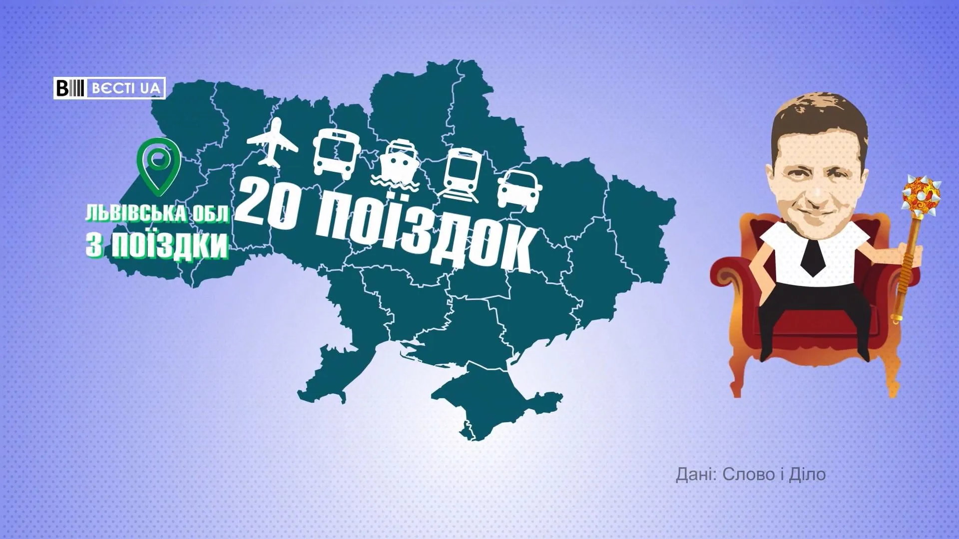 Шостий президент здійснив 20 робочих поїздок Україною. Найбільше нога зеленського ступала на Львівщину, там він був тричі.