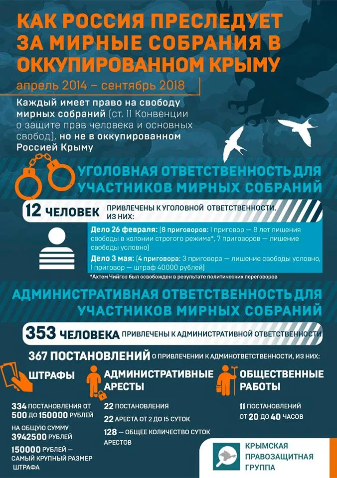 Від початку окупації кримські "судді" затвердили 367 рішень щодо учасників мирних зібрань, загальна сума штрафів становить 3 мільйони 942 тисячі рублів,