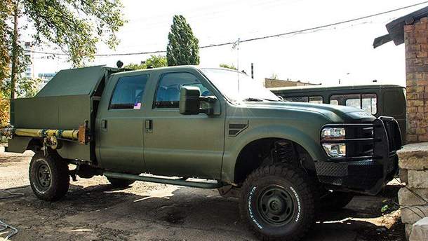 Першому Форду (це той самісінький, у якого дорогою відірвався бампер) наварили спеціальну платформу та опори: можна буде встановити, наприклад, певний серйозний калібр і використовувати машину як сучасну високомобільну тачанку. Підскочив – розклався за долі секунди – стер ворога з лиця землі – і зник, доки ворожа артилерія ще й не прокинулась. Цю машину ми покажемо вам дещо пізніше: на момент зйомки з автівкою саме завершували роботи, тож ми не стали дратувати майстрів і лізти під руку із камерами.