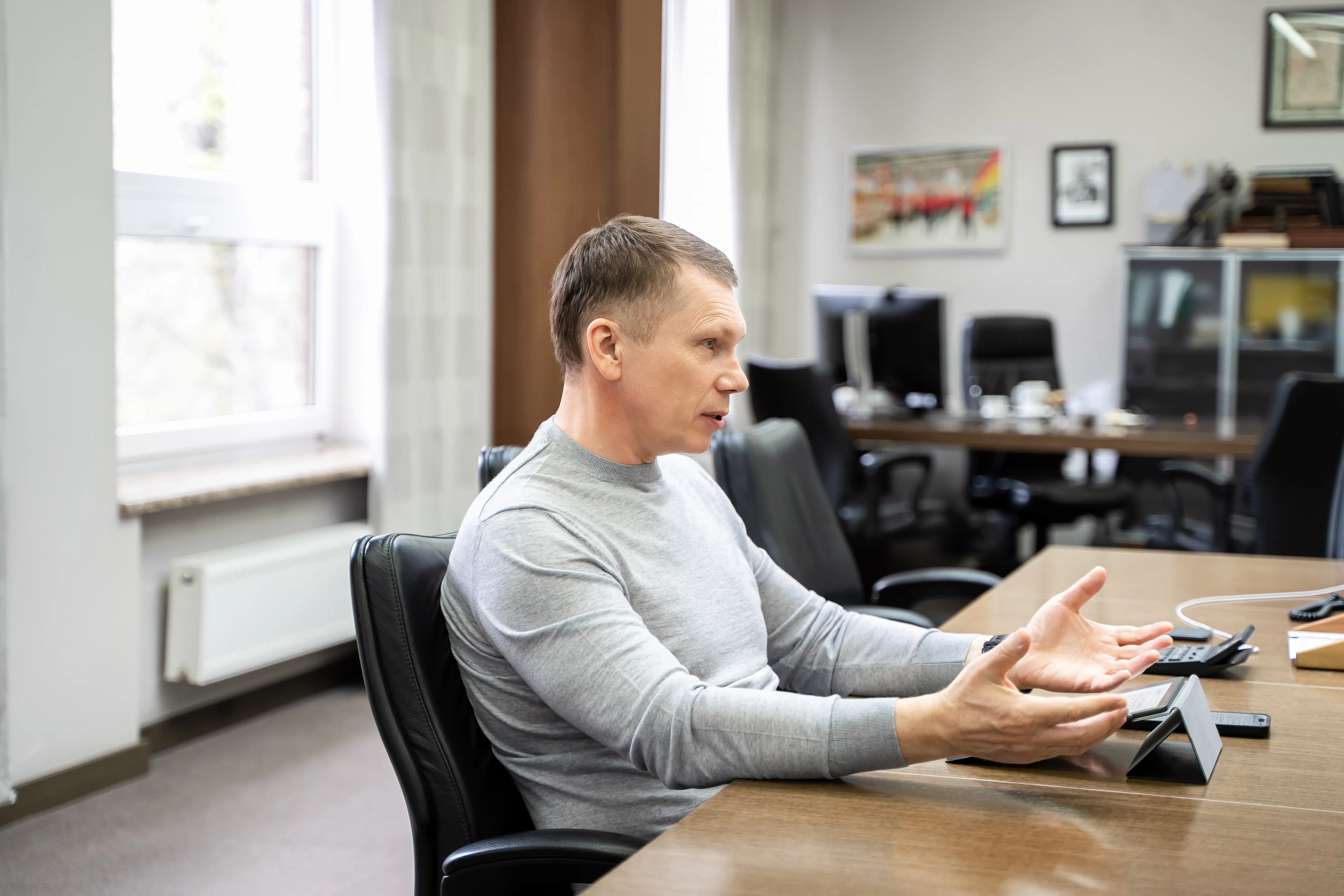 Роман Лунін, власник мережі супермаркетів, під час робочої зустрічі / Фото "ВЕЛМАРТ"