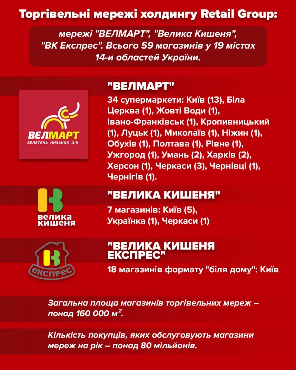 Retail Group виріс зі звичайного супермаркету до мережі з 59 магазинами у 19 містах та загальною площею понад 160 тисяч квадратних метрів, інформує Смачно 24.
