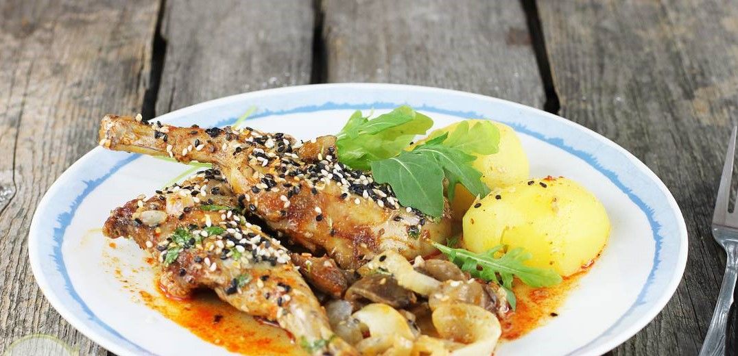 - Наприкінці за бажанням посипте кролика кунжутом. Подавати страву можна з вареною картоплею, макаронами або крупами.