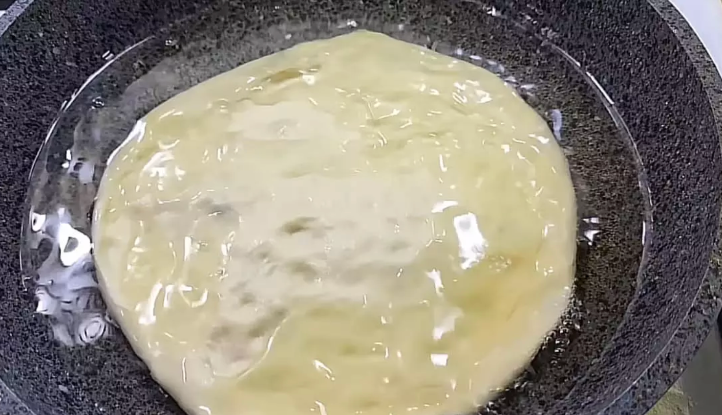 - Кульки розкатуємо у коржі та смажимо на пательні до золотистості.