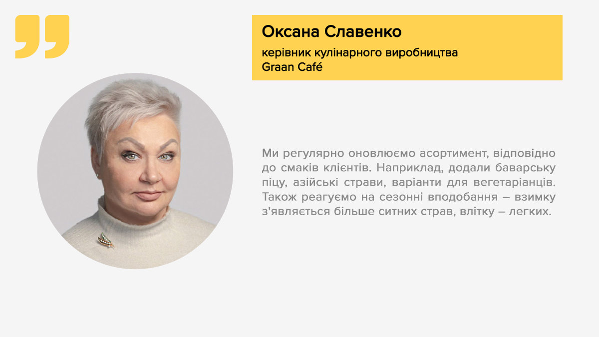 Сегодня в Украине работает 13 точек Graan Café, и самая новая – в Черновцах. Именно на этой локации в меню представлена уникальная позиция – деруны по буковинским рецептам. К слову, в день открытия черновицкой точки удалось установить рекорд – только за день заказали более 870 бургеров.