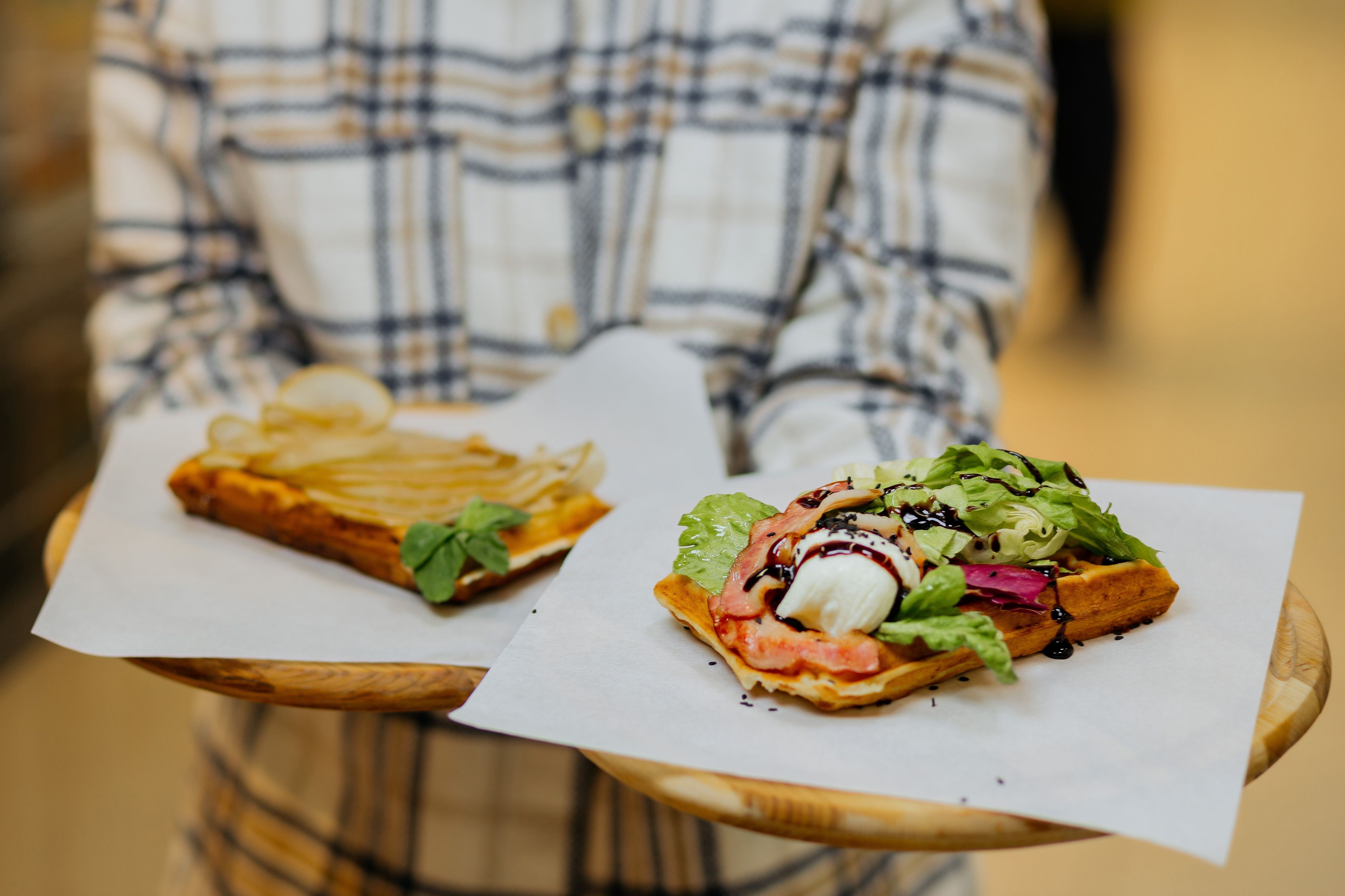 А если же захотелось чего-то оригинального, советуем попробовать соленые или сладкие блины и бельгийские вафли.