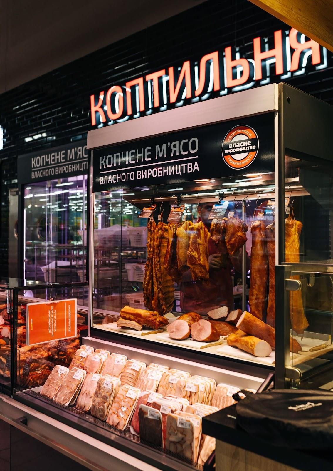Сьогодні у мережі супермаркетів працюють сім повноцінних коптилень, які розташовані у різних регіонах України. Щодня кожна з них випускає десятки видів копченостей – від класичних шинок і грудинки до фірмових рулетів, ковбас, крилець та ребер.