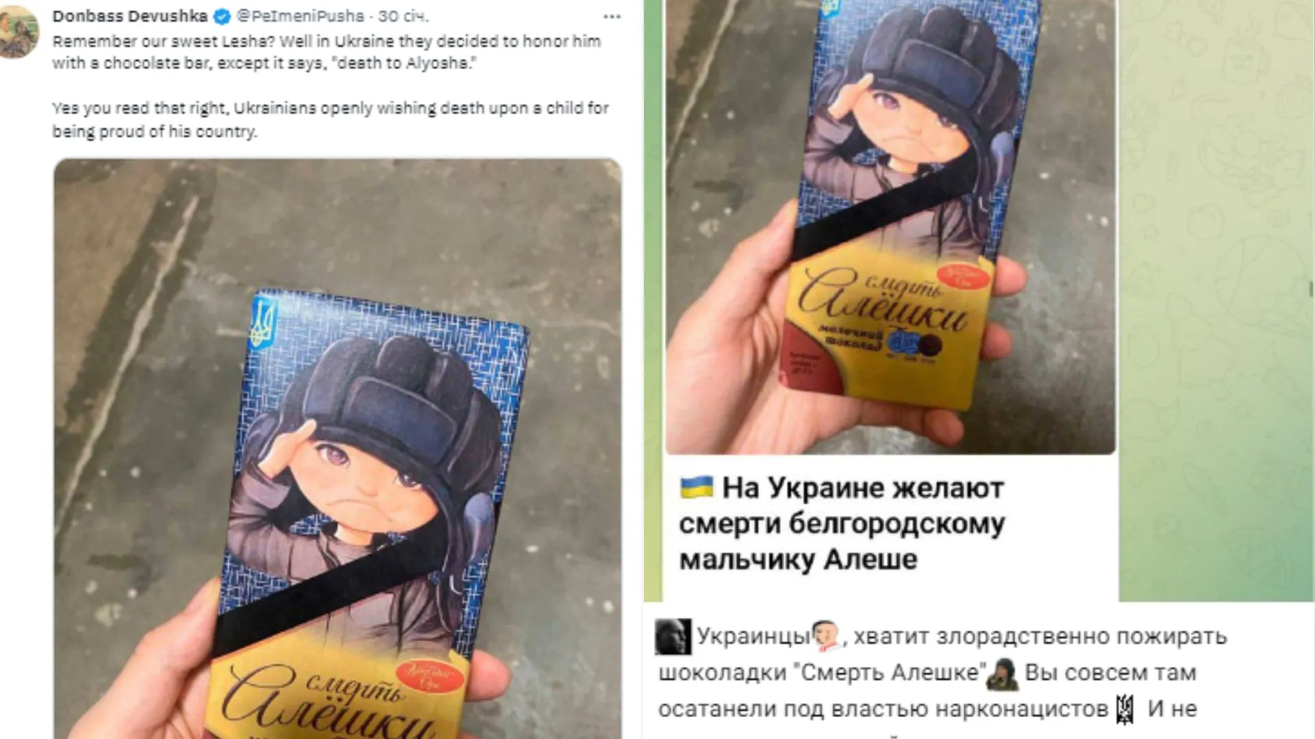 Про це розповіли у Центрі стратегічних комунікацій. Зазначили, що в мережі поширюють фото плитки шоколаду, яка має назву "Смерть Алешки".