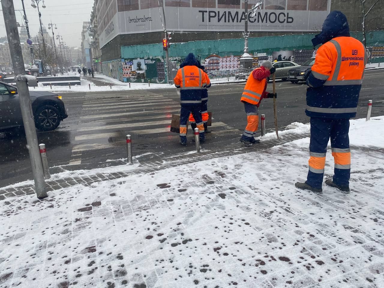 У КМДА розповіли, що у першу чергу роботи відбуваються на спусках і підйомах, покритті із гранітної бруківки, мостах та головних дорожних артеріях міста.