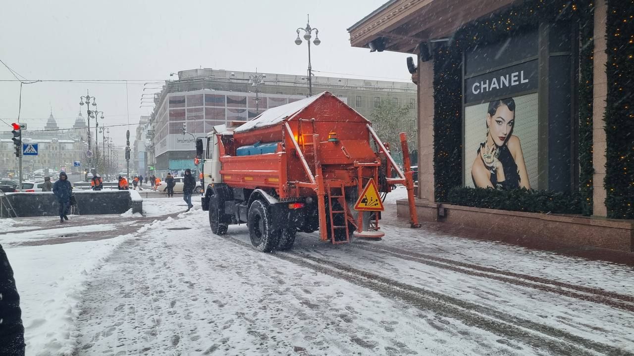 За прогнозом Українського гідрометцентру, 23 та 24 листопада у Києві теж очікується помірний мокрий сніг. На дорогах ожеледиця.Комунальники працюють на повну
