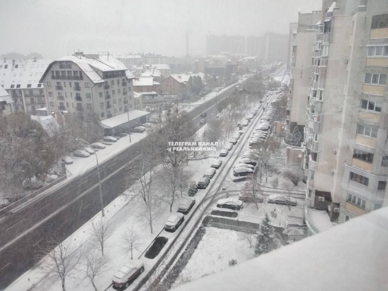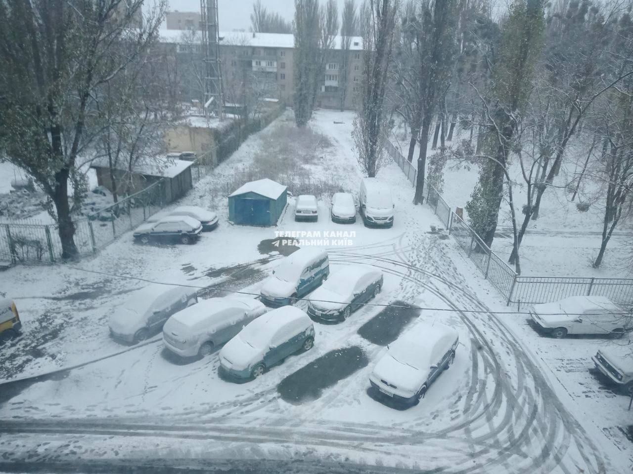 Кияни радіють снігу та активно публікують фото в мережі. На кадрах можна побачити, що притрусило будівлі, дахи автівок та дерева.
