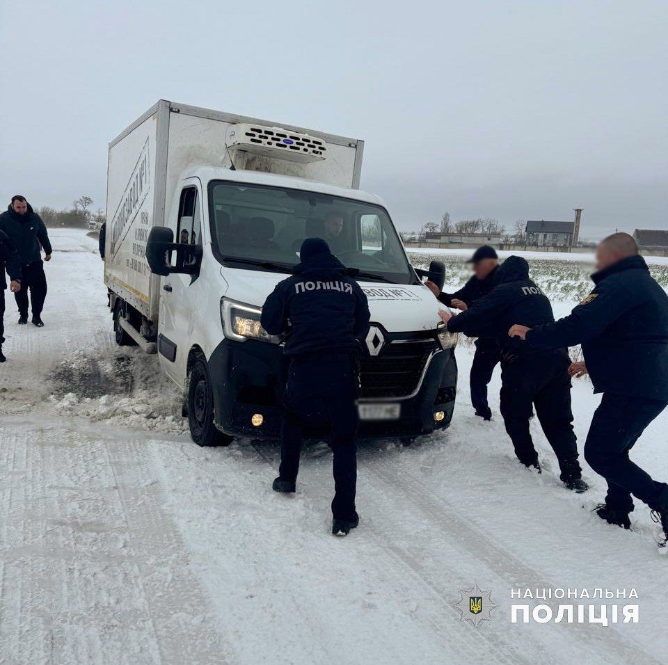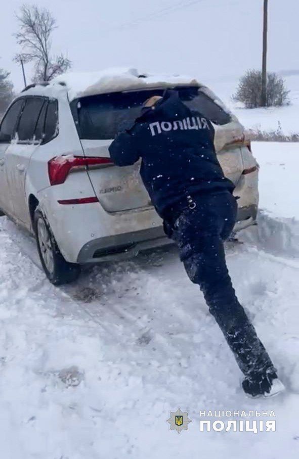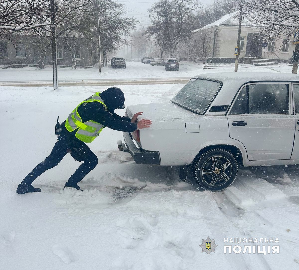 Поліцейські допомагають водіям, які застрягли у заметах – більше у галереї