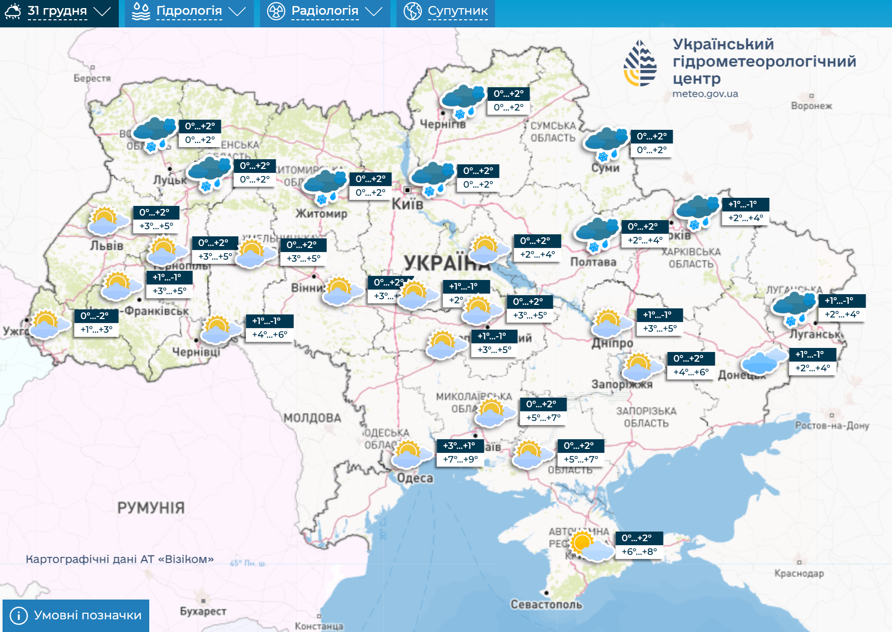 Прогноз погоди на 28 – 31 грудня / Скриншоти з Укргідрометцентру