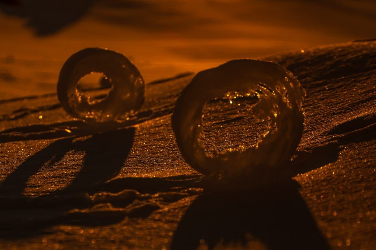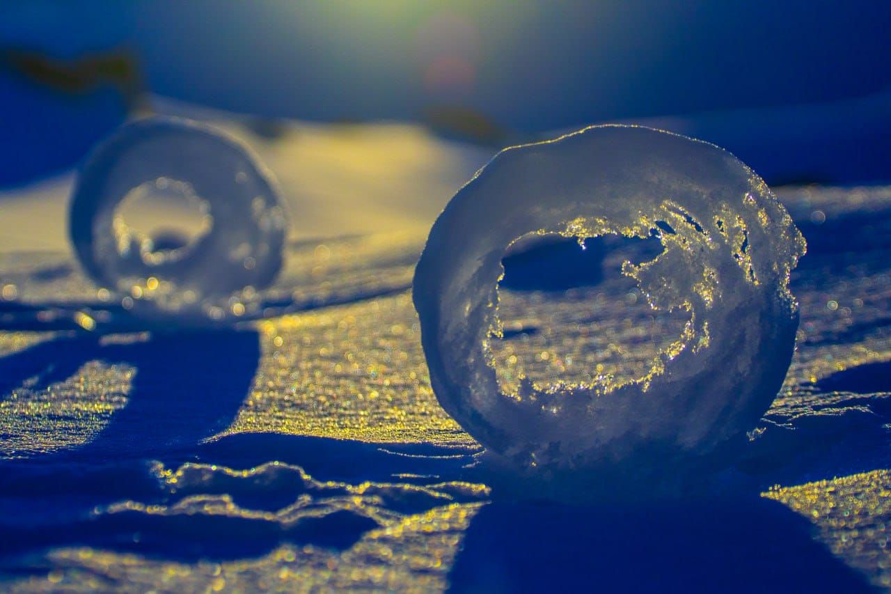 На світлинах видно снігові сувої. Дослідники влучно назвали їх сніговими пончиками, але вони схожі і на колечки з сухого сніданку, і на солоні снеки. Інша наукова назва – снігові рулони або сніжки вітру.