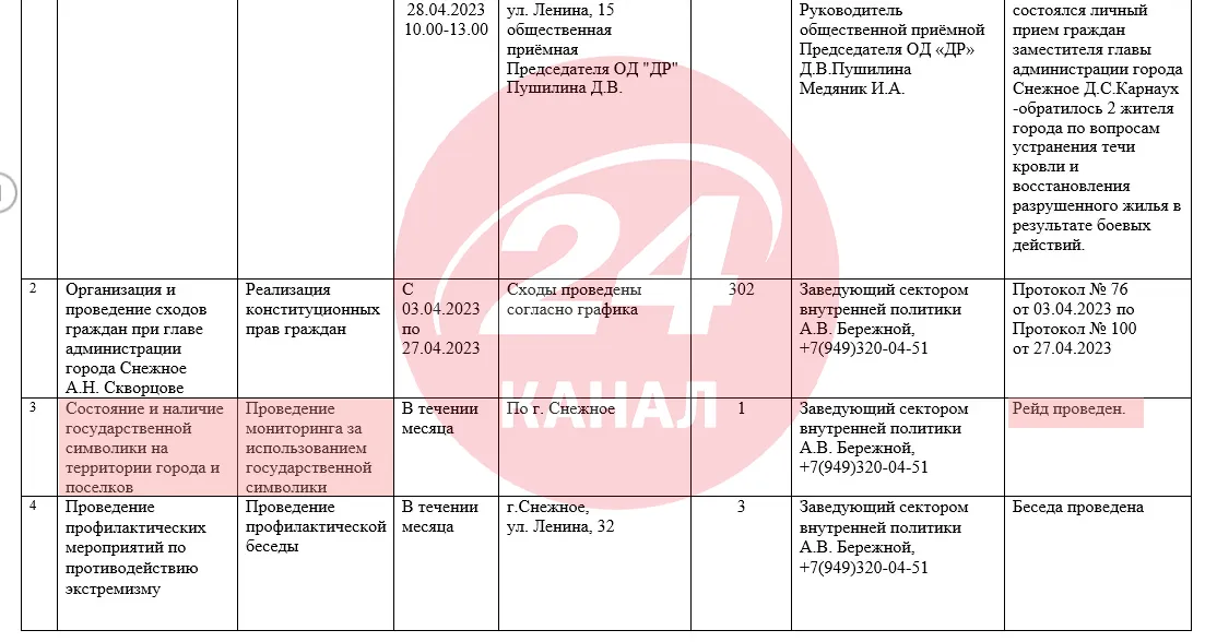 Прапори важливіші за все / Документ із дампа відділу внутрішньої політики окупаційної адміністрації Сніжного за 2023 рік
