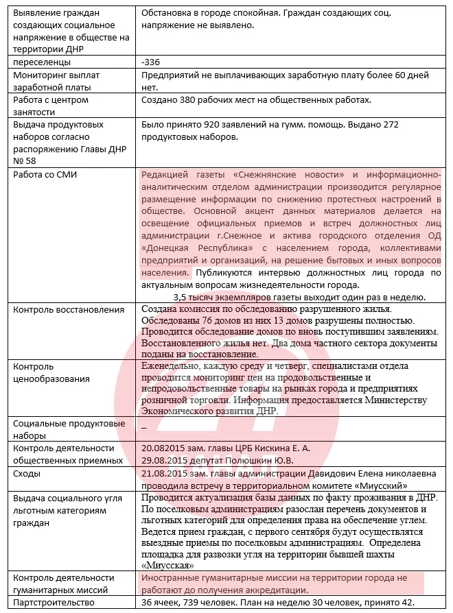 Економічний успіх "ДНР" виглядає саме так / Скриншот листа з дампа відділу внутрішньої політики окупаційної адміністрації Сніжного