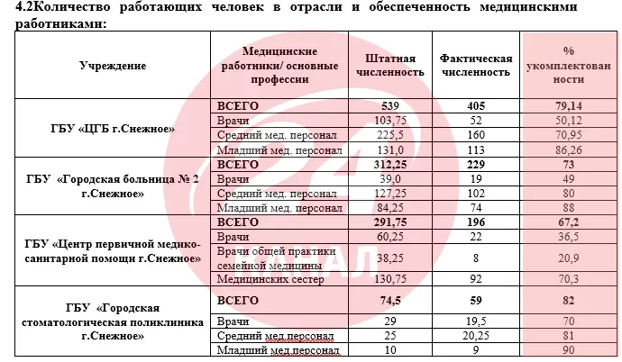 У Сніжному – критична нестача лікарів / Скриншот документа з дампа відділу внутрішньої політики окупаційної адміністрації Сніжного