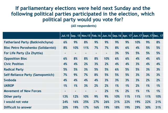 Так проголосували б українці, якби вибори проводилися 17 грудня 2017 року