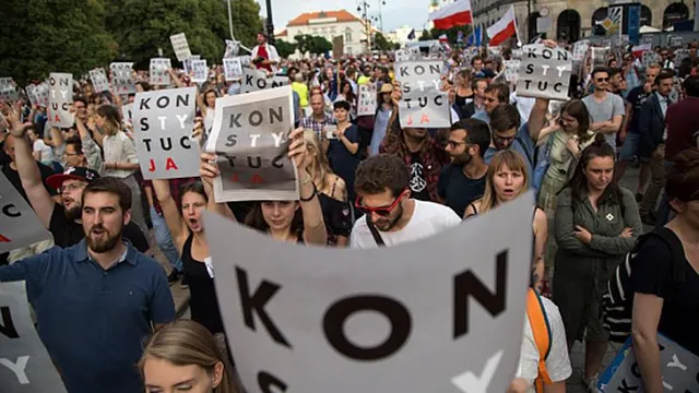 Жители Варшавы и других крупных городов неделю назад вышли на массовые протесты. Их возмутило намерение правительства подчинить себе судебную ветвь власти. По сути, это означало бы установление авторитарного режима.