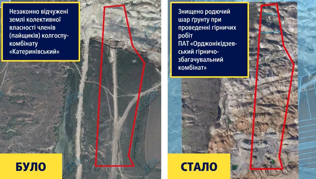 За версією слідства, у 2011-2012 роках Олександр Вілкул, будучи головою Дніпропетровської ОДА, видав розпорядження про незаконну зміну цільового призначення земельних ділянок Колгосп "Катеринівська" і "імені Горького" загальною площею близько 21 гектарів для розширення кар'єру Орджонікідевского ГЗК. Зараз там знаходяться гірські відвали. Збитки оцінюються в 12 мільйонів гривень.