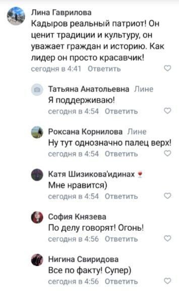 Російські боти злагоджено почали удавати, що вони справжні люди. Писали, що Кадиров справжній патріот і що взагалі він є прикладом для наслідування. Інші "люди" ж підтримували їх – респектували, стверджували, що ті все правильно говорять. Однак була одна проблема – звісно ж у пості навіть не згадували Кадирова.