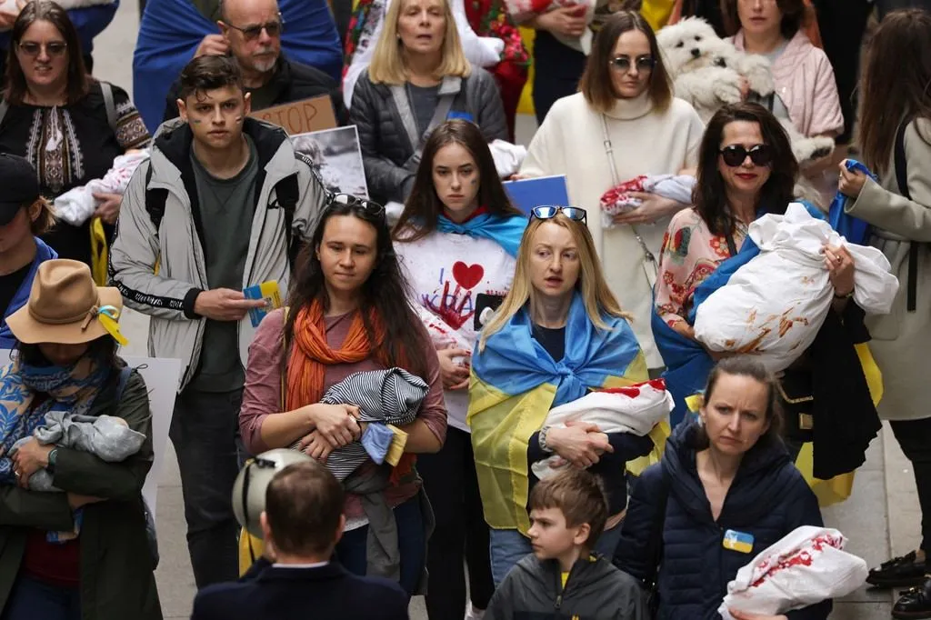 Одна з протестувальниць Ольга Горман наголосила, що цією акцією хочуть привернути увагу світу до сотень дітей, які постраждали від війни в Україні.