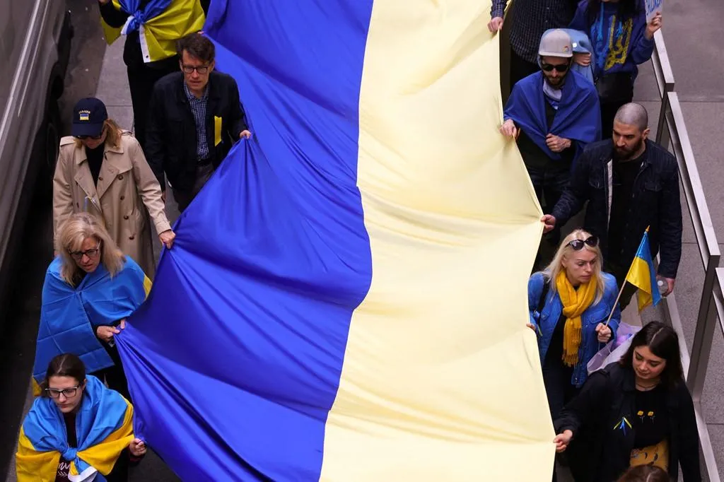 "Будь ласка, зупиніть Путіна. Будь ласка, захищайте Україну", – просять демонстранти.\