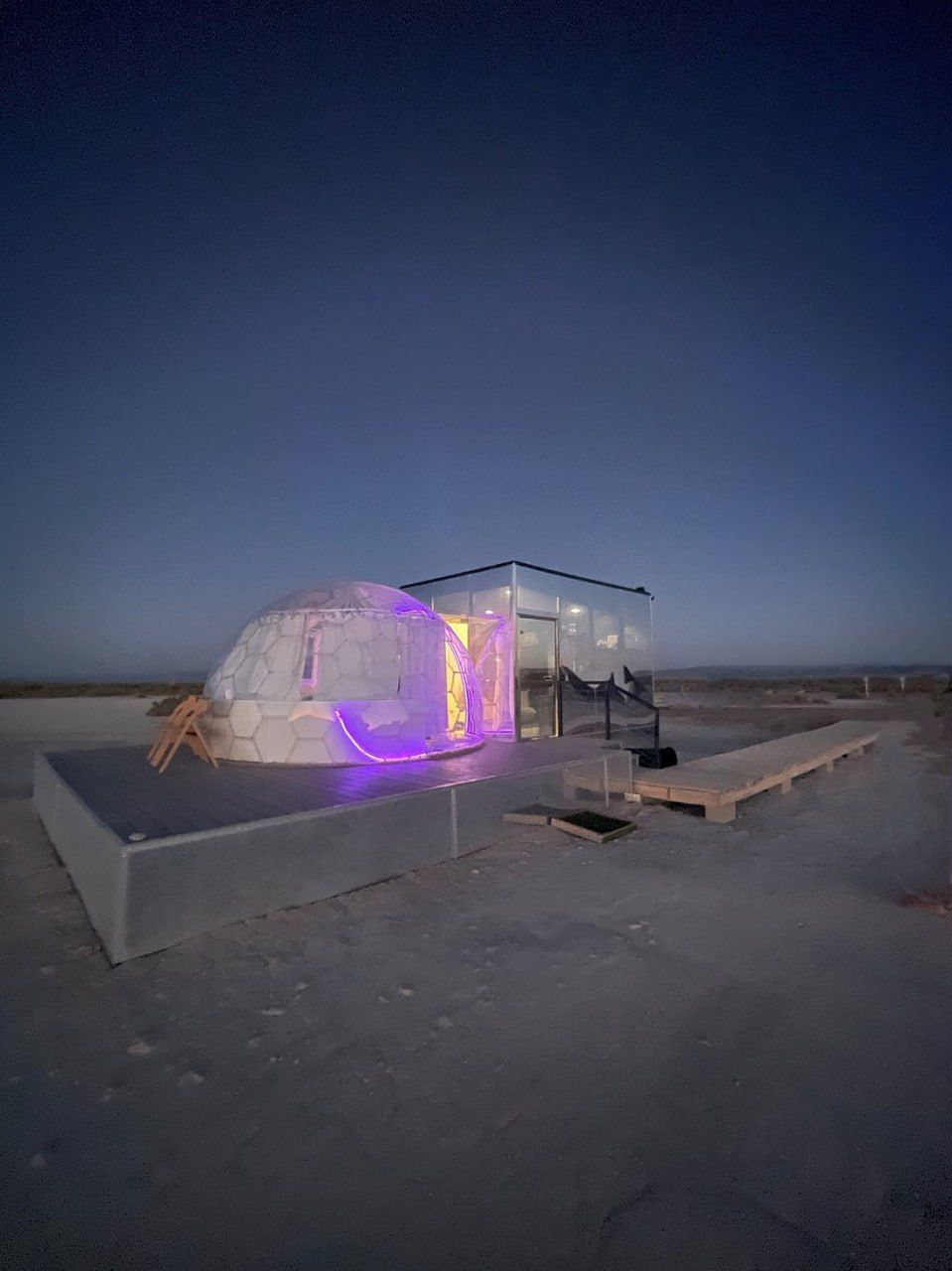 Серед розваг для відвідувачів є спа, сауна, бар і кімната для геймерів з PS5 і настільними іграми. Також охочі можуть покататися по пустелі на спідерах. Ціна за одну добу перебування в готелі стартує від 320 доларів за номер на 4 людини.