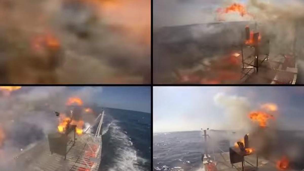 Для тестування зброї військові запустили ціль – безпілотний літак, зброю, яку все частіше використовує Іран, Північна Корея, Китай, Росія. Під час пострілу в одну мить крило безпілотника загорілося, нагрівшись до температури в тисячі градусів, і ціль впала в воду. Постріл стався тихо і невидимо.