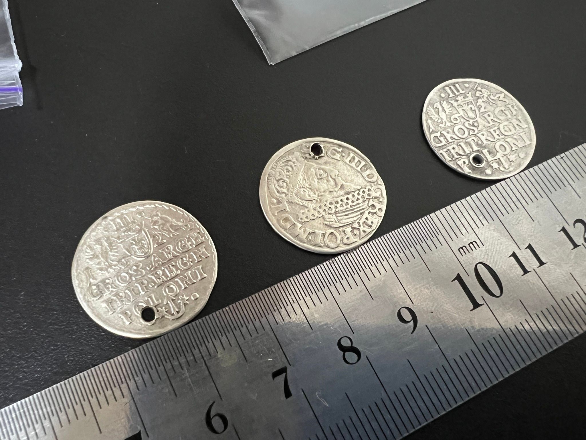 Інші 14 монет 1507-1623 років – півгроші часів Королівства Польського і Великого князівства Литовського та трояки Речі Посполитої.