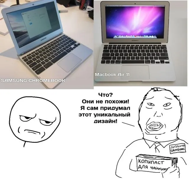Сумніваюсь, що варто нагадувати про судові процеси Apple із Samsung. На думку багатьох покупців, судовими позовами Apple лише довів, що Samsung випускає такі ж пристрої, лише в іншому ціновому діапазоні. З думками "а навіщо платити більше" дехто із них пішов прямісінько у магазини Samsung.