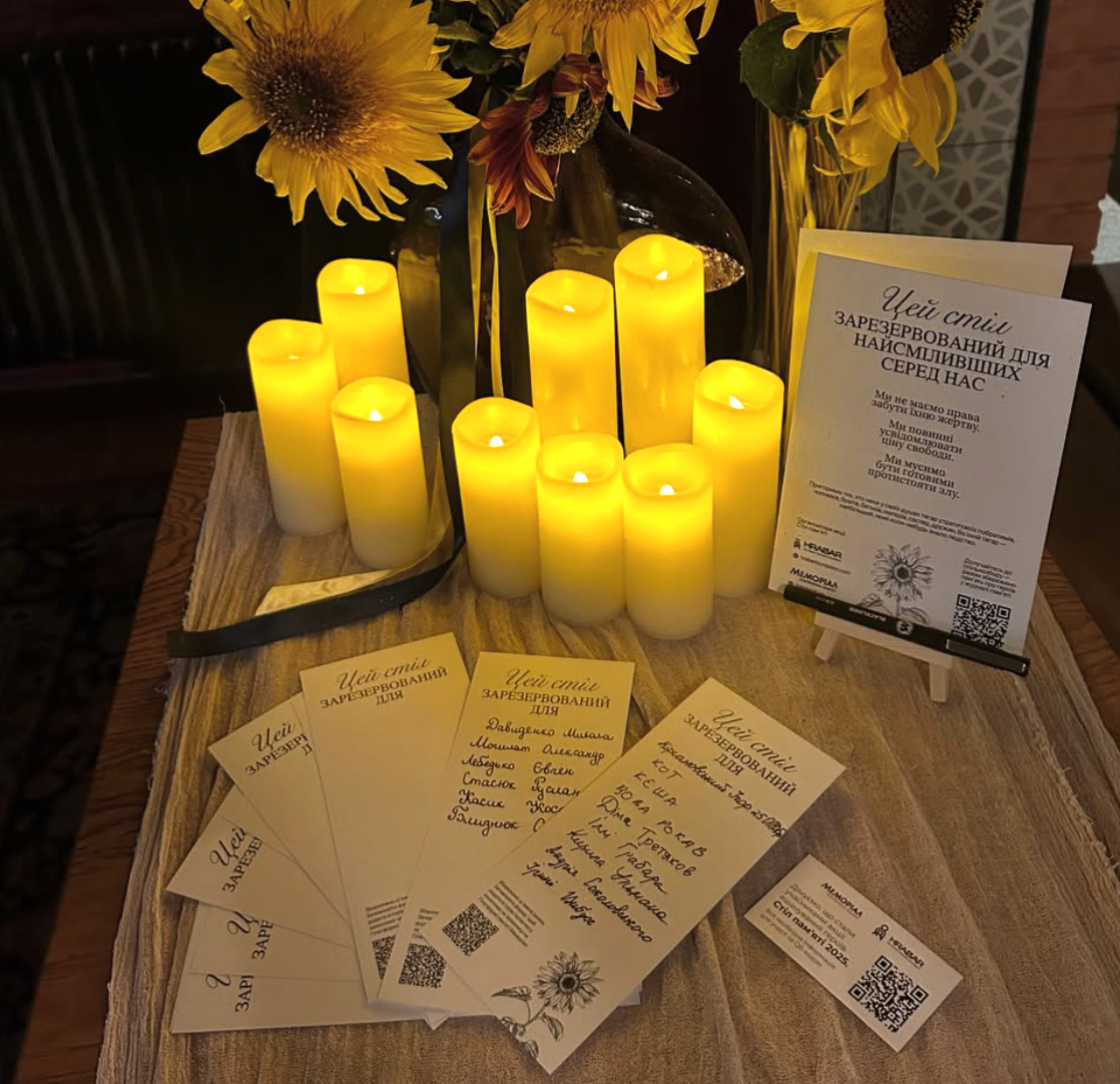 І я подумала, що ця концепція дуже органічна, особливо коли йдеться про ресторани. Порожній столик у закладі в певний день дуже точно передає відчуття втрати. У перший і другий рік ми навіть намагалися пояснювати, що за цей столик не можна сідати. Коли зал повний, година пік, а один столик залишається порожнім – це дуже сильний образ. Людина читає, що він зарезервований для того, кого немає. Це проста, але дуже сильна метафора.