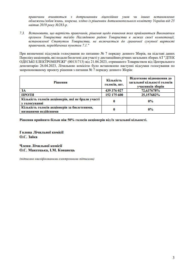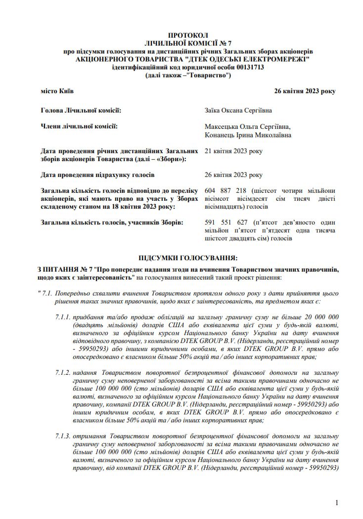 Протокол зібрання акціонерів АТ "ДТЕК Одеські електромережі" / Скриншоти