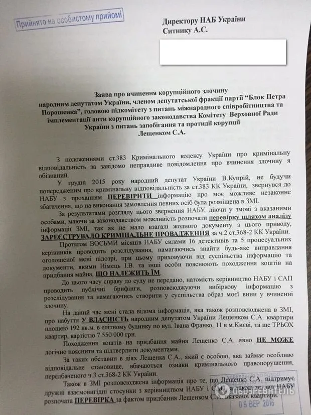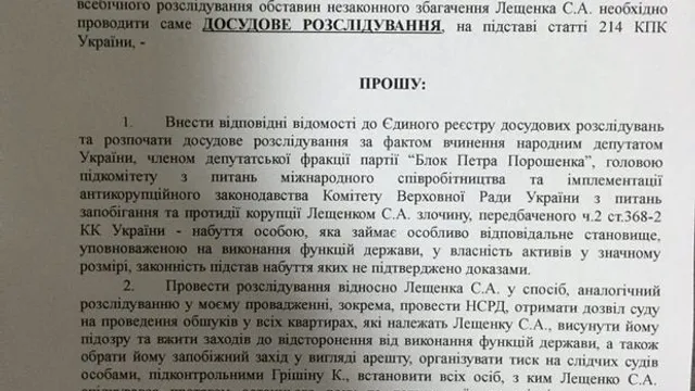 Нагадаємо, справа у квартирі, яку нардеп купив за 7,5 мільйонів гривень. Щоправда пізніше Лещенко пояснив, ці гроші дала його наречена.
