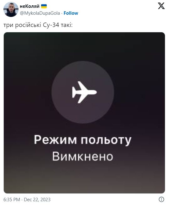 Користувачі також жартома припустили, як би могли відреагувати українські захисники, які збили російські Су-34.