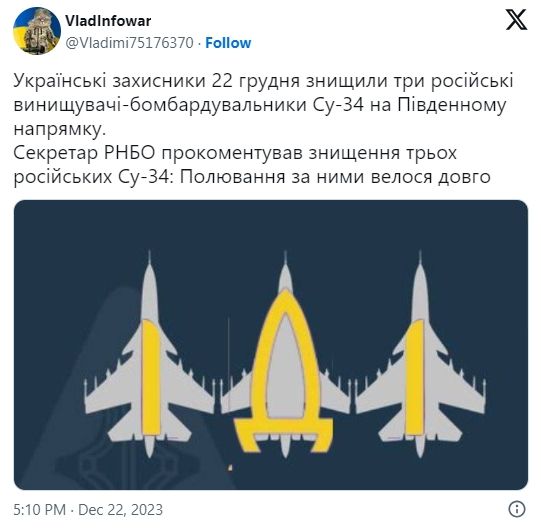 Після того, як командувач Повітряних сил Микола Олещук повідомив про збиття трьох Су-34, окупанти у мережі також почали підтверджувати втрати. Зокрема, один з офіцерів почав бідкатися на "чорний день для російської авіації", а також додав, що після збиття Су-24М поблизу острова Зміїний багато пілотів взагалі відмовлялося виконувати завдання російського командування.