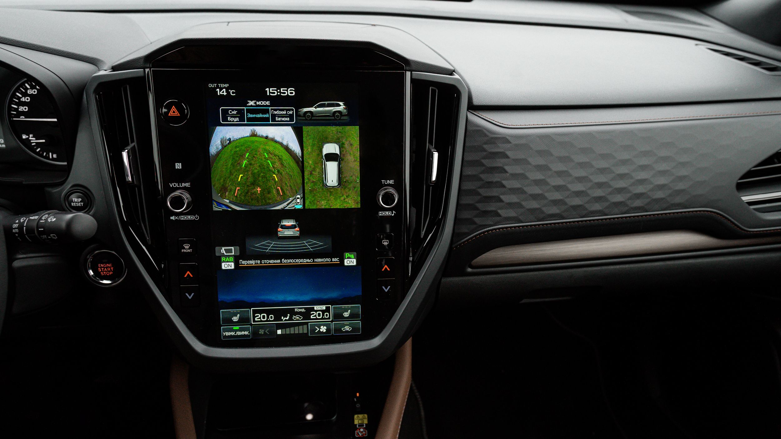 На тест-драйві у 24 Каналу максимальна комплектація Touring. Це означає, що ми отримали все: перфоровану шкіру, звук Harman Kardon, підігріви всього, до чого можна дотягнутися і величезний 11,6-дюймовий екран, який, на щастя, не забрав усіх фізичних кнопок. З цим усім Forester Touring обійдеться вам у 2 039 000 гривень. Щоб було дешевше, можна обрати версію Sport (вона відрізняється зеленими елементами на радіаторній решітці на кузові та сидіннями з екошкіри) або ж Limited (тканинний салон, менше опцій).