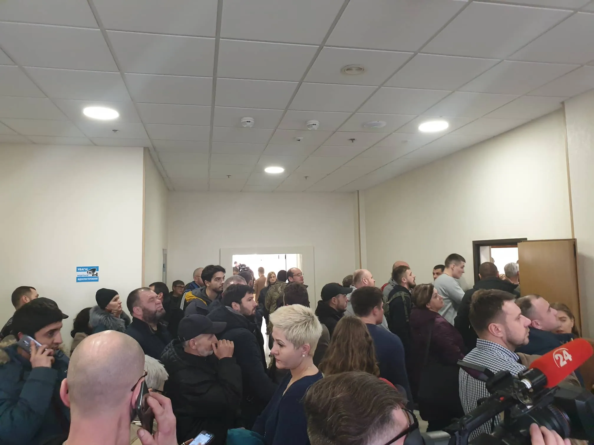 Загалом на засідання прийшли декілька десятків активістів. Вони чекають у коридорі, а Кузьменко з адвокатами у залі суду. Усі разом вимагають, щоб приїхали прокурори, а суд розглянув апеляцію.